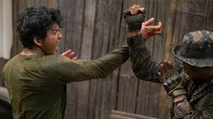 And ok sure, you’re not gonna watch a Rambo sequel for the nuances in plot or character.  You can certainly have both but I get it, just blow stuff up real good.  Well a big problem with the action is it all blends together.  It’s Rambo shooting up or stabbing dudes for the most part.  They didn’t really come up with cool or inventive sequences.  The last twenty minutes where Rambo uses a helicopter to blow the fuck out of everything in sight does make you sit up and take notice but only because of how over the top it is.